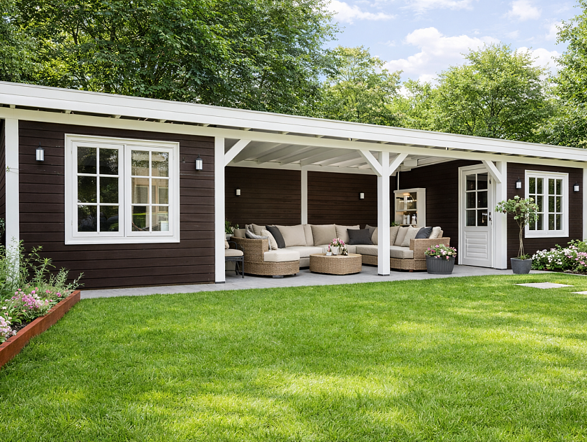 • Навес к частному дому для автомобиля ГРИМСТАД
