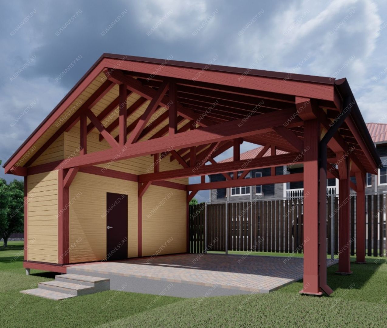 • Навес к частному дому для автомобиля ГРИМСТАД